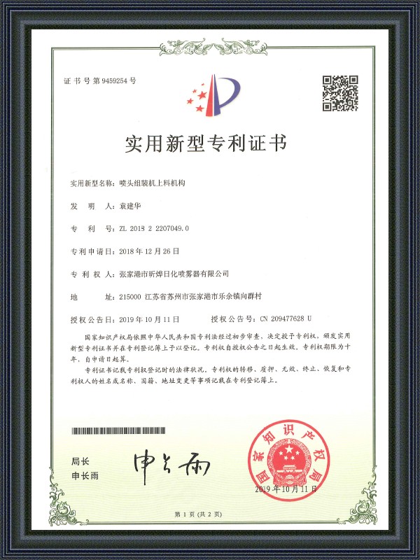 Potvrda o patentu korisnog modela